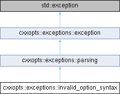 Public Member Functions inherited from cxxopts::exceptions::parsing | |