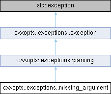 Inheritance diagram for cxxopts::exceptions::missing_argument: