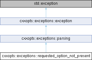 Public Member Functions inherited from cxxopts::exceptions::exception | |